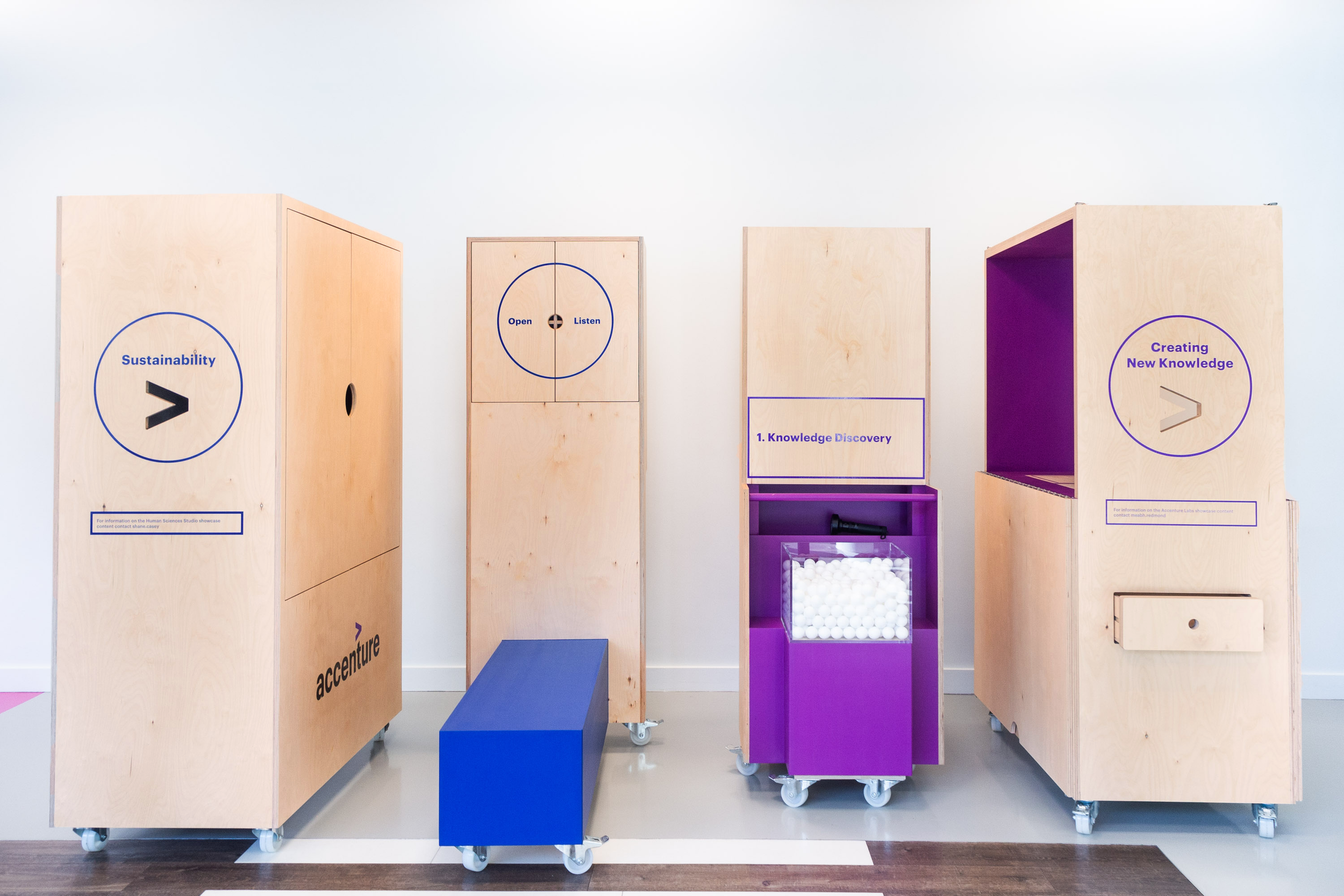 Working in collaboration with Some Place Studio, we created an interlocking mobile exhibition for Accenture Ireland. Each of the four parts were fabricated in birch plywood and contained various interactive displays. The exhibition was used to promote Accenture's AI and sustainability focused research to a wider audience