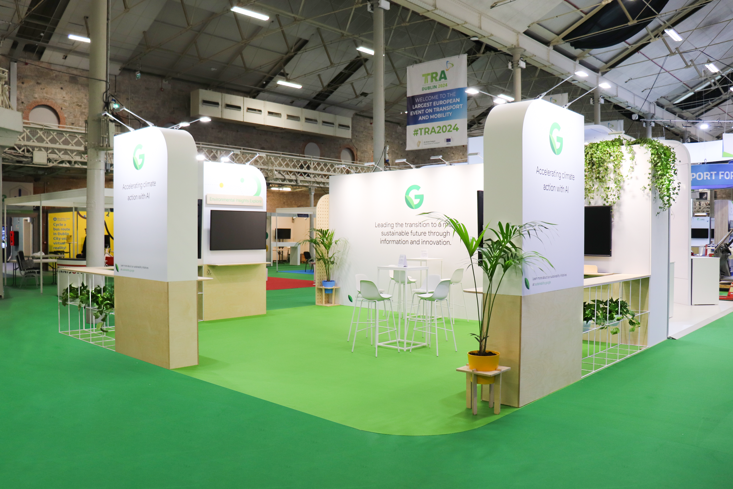 We were tasked with designing and building an exhibition stand for Google AI at the recent TRA24 event in Dublin. The primary challenge we faced was working within a relatively short lead time. Our team embraced the challenge and delivered a striking stand that embodied clean lines and simple shapes, adhering to a pared-back aesthetic with a minimal color palette. Google, like many major brands, has a prescriptive approach to design briefs, which fortunately aligns well with our own preferred aesthetic. Despite the tight timeline, we managed to incorporate some of our own current fave elements such as Gridwall, birch plywood, and potted plants into the stand design, creating a space that was both functional and visually appealing.