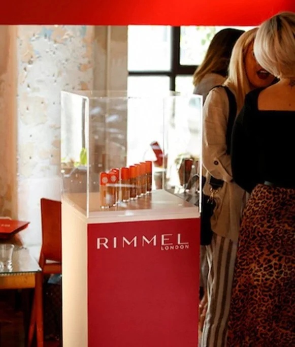 We were asked to set the scene for a masterclass with Rimmel global make-up artist James Molloy at the Drury Buildings, Dublin. We used three white display plinths to carry Rimmel product for the masterclass. A branded mobile phone charging station was a big hit with guests, as was the custom made back lit angel wings photo backdrop. White pod tables were placed around the space for food & refreshments and the whole space was lit in red to create the perfect space for this event.